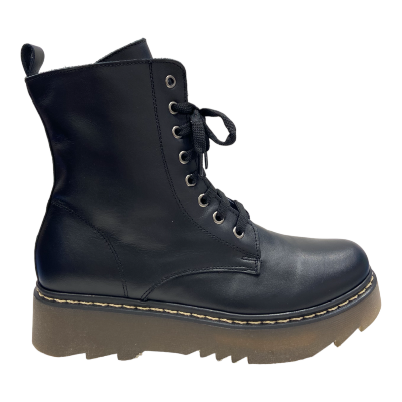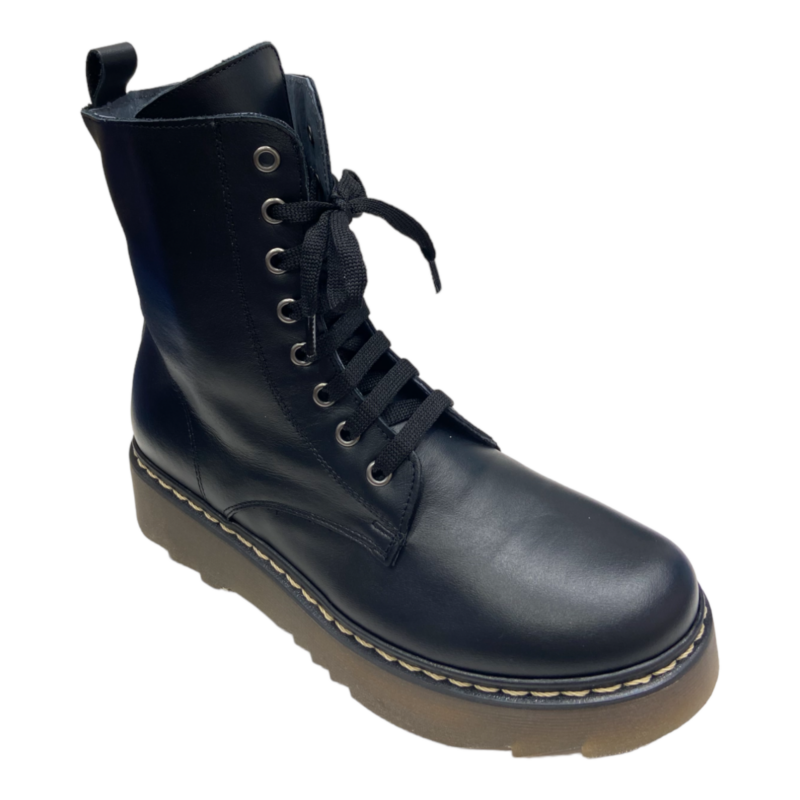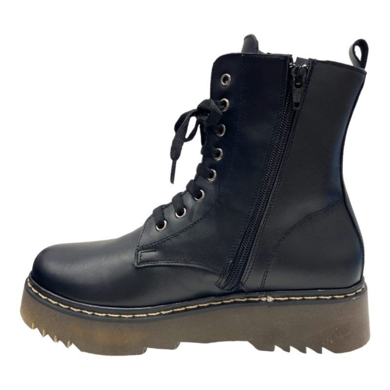 Anfibio bambina in vitello nero con cucitura grezza e suola alta – Chiara Luciani