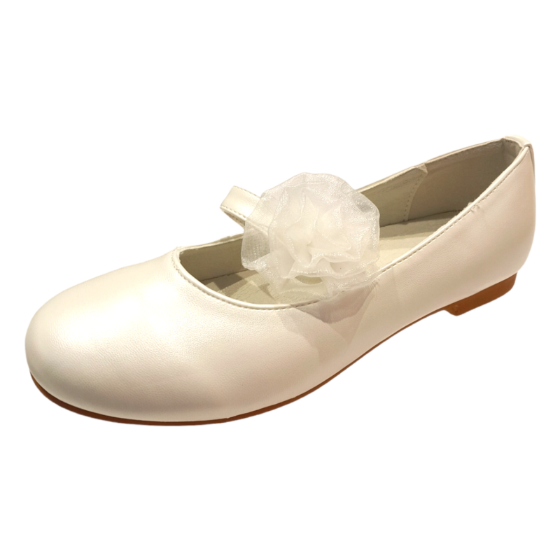 Ballerina bianca con fiore di raso sul cinturino – BACIO & BACIO