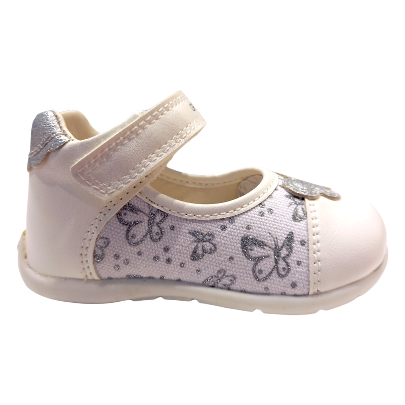 Ballerine Elthan è una scarpa primi passi bambina dal look classico, arricchito da graziose farfalline sulla tomaia e farfalla glitterata nella parte anteriore che renderanno felice la tua bimba.