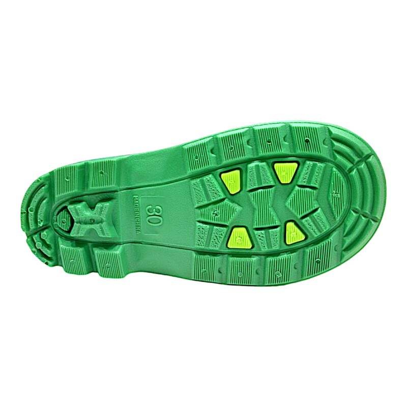 La caloscia è decorata con un orso cuoco in rilievo, con cucchiaio e ciotola, un dettaglio colorato che rende la scarpa ancora più giocosa. Il verde acceso dona energia e rende lo stivale facilmente riconoscibile.