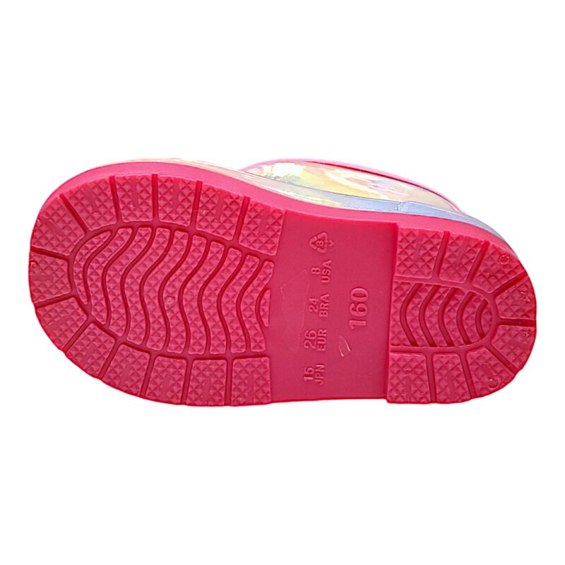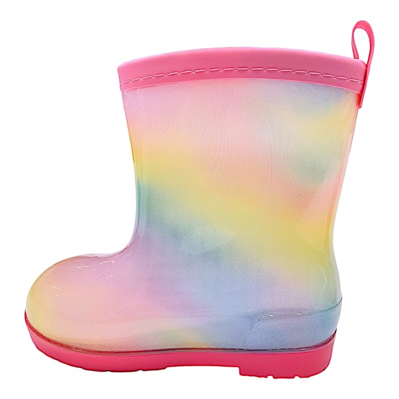 Perfetti per le giornate di pioggia, questi stivali da pioggia/calosce sono pensati per accompagnare la tua bimba mentre gioca all’aperto in tutta libertà. Il delicato effetto rosa multicolor con sfumature arcobaleno rende la caloscia allegra e originale, trasformando anche una giornata grigia in un momento pieno di colore. 🌈☔