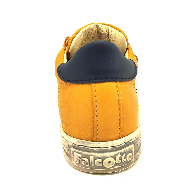 Classica sneaker gialla a doppio strap, con la stella Falcotto laterale di colore blu.