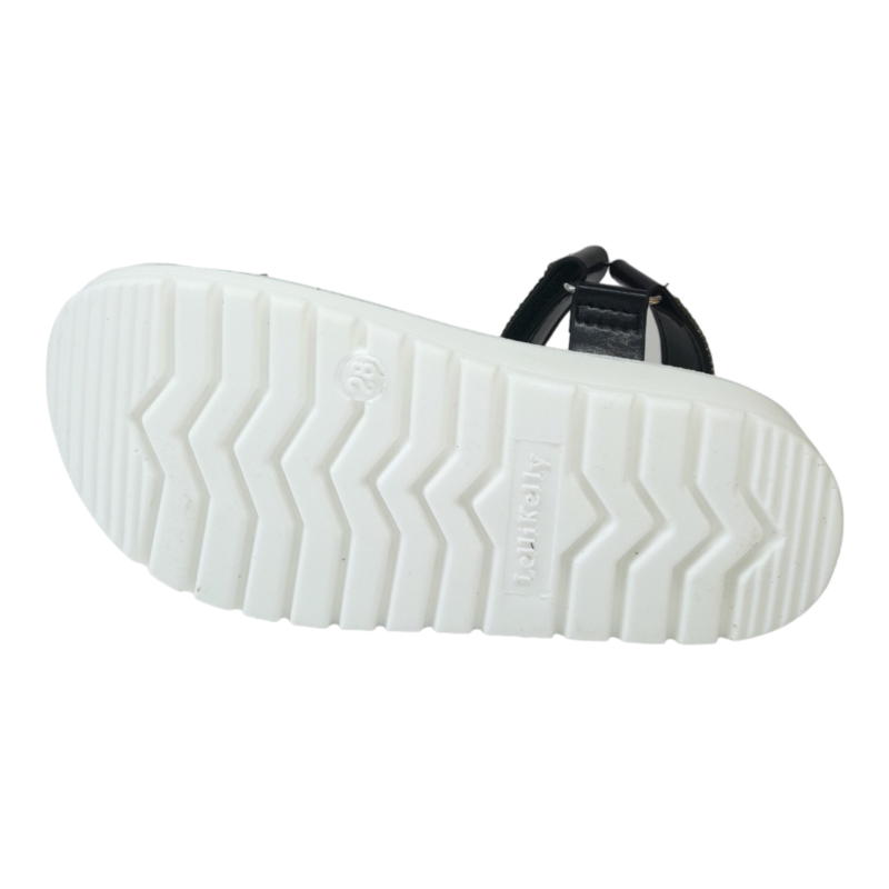 Realizzati in similpelle con fodera interna in morbida pelle bianca, questi sandali offrono una calzata confortevole e traspirante. La soletta imbottita garantisce il benessere dei piedini, mentre la suola in gomma flessibile assicura movimenti naturali e sicuri.