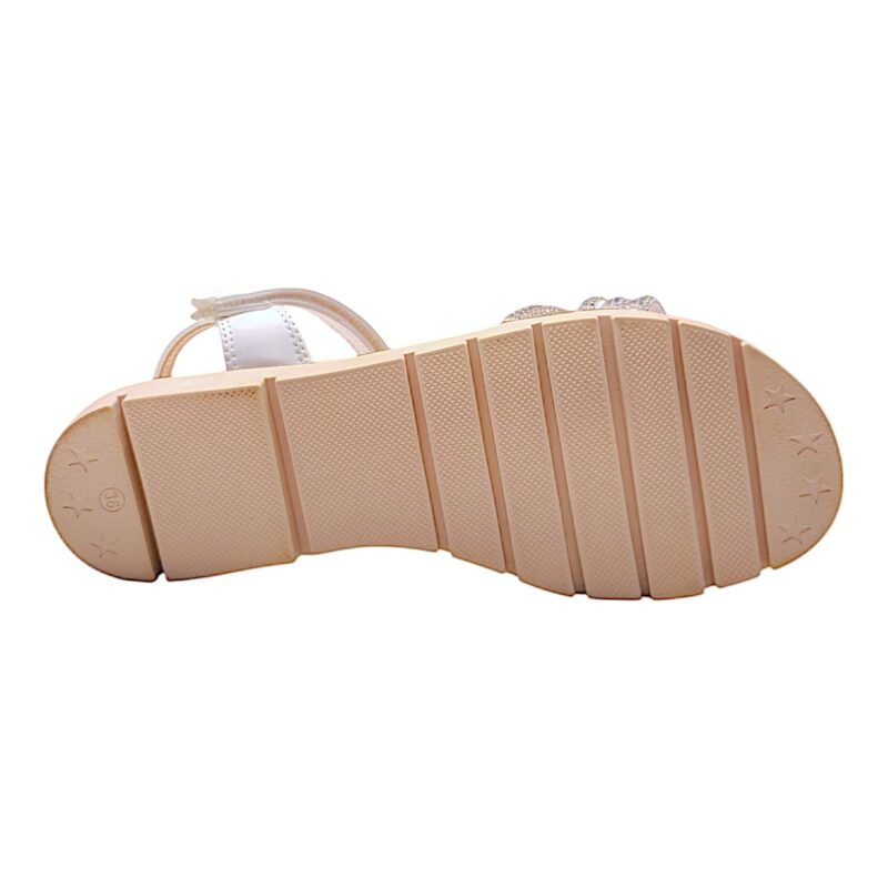 Il sandalo Ginevra bianco di Lelli Kelly è l’accessorio ideale per le bambine che vogliono brillare in ogni occasione. Le fasce impreziosite da strass decorativi regalano un tocco elegante e luminoso, perfetto per abbinamenti sia casual che più ricercati.