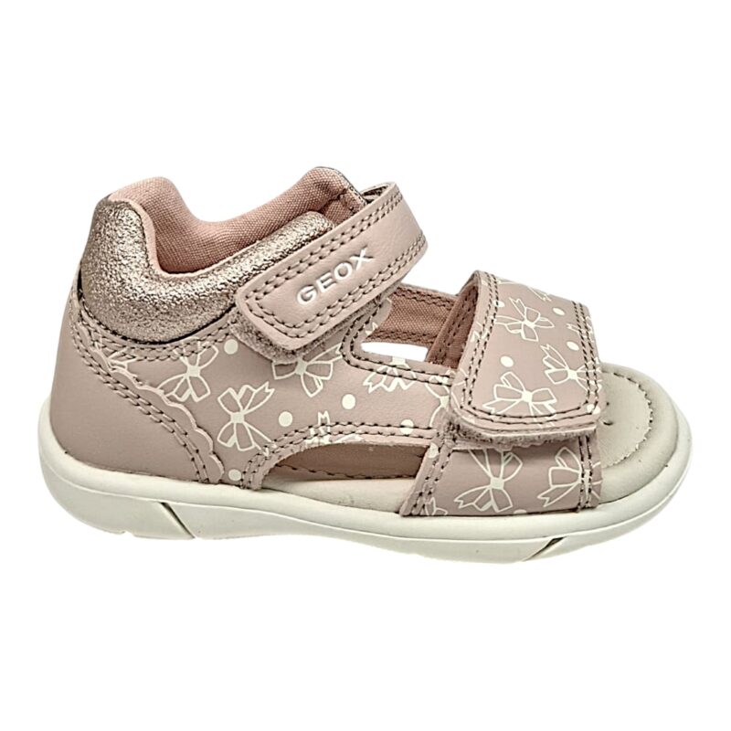 Sandalo bambina light rose con fiocchetti bianco panna e doppio strappo – Geox