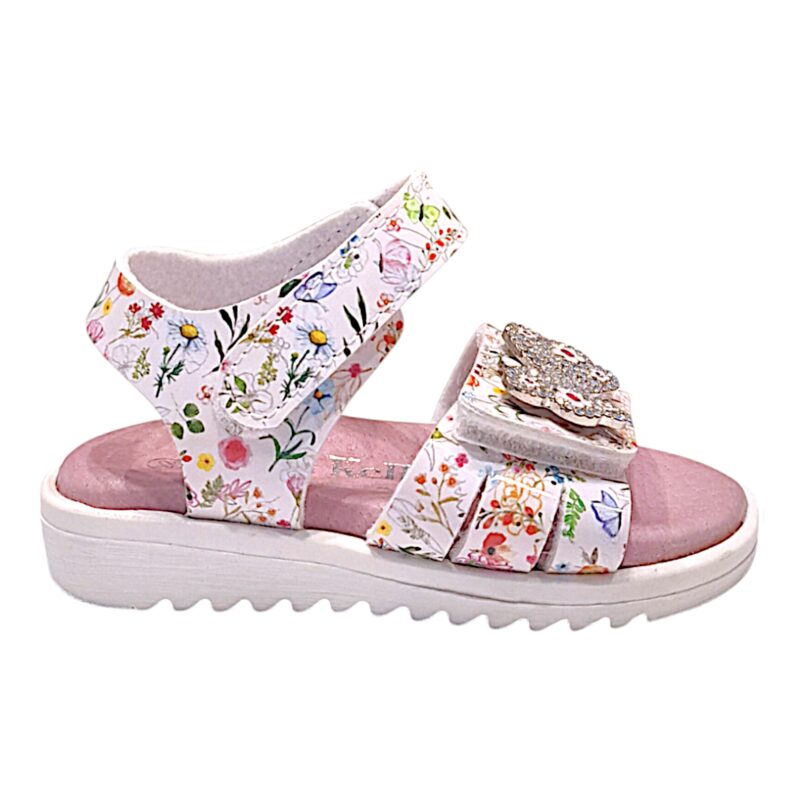 Sandalo bambina primi passi bianco con fantasia floreale e farfalla glitterata – Lelli Kelly