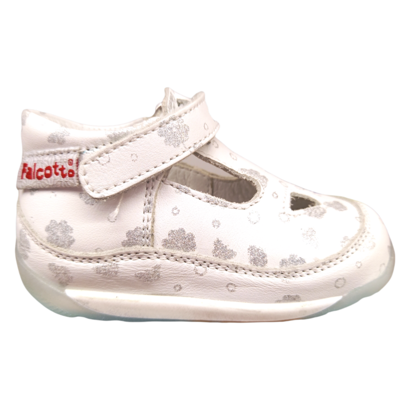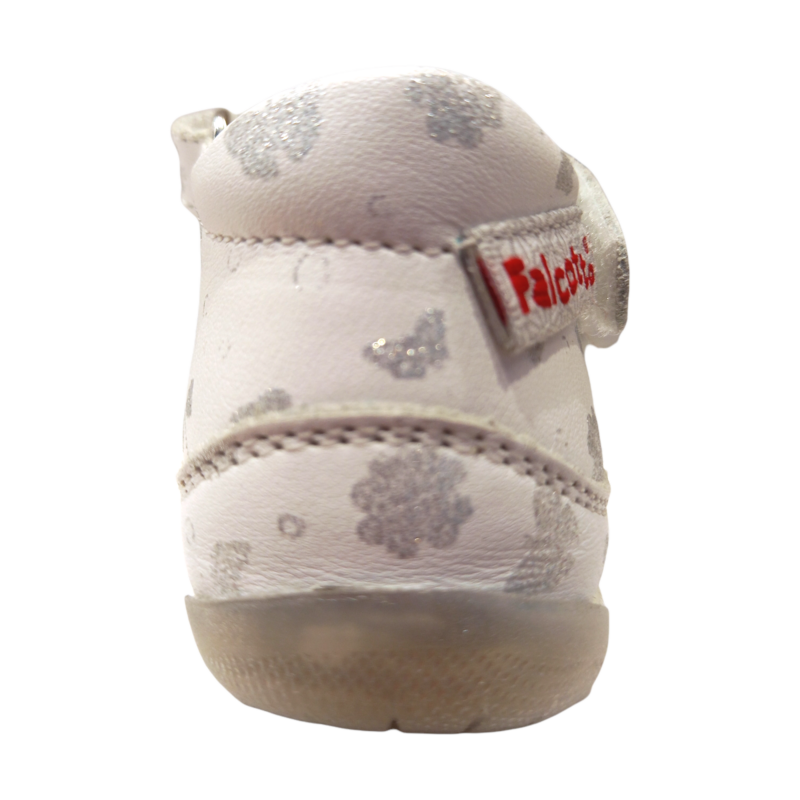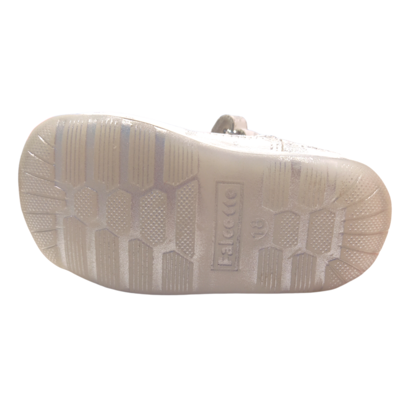 Delicata, elegante e perfetta per accompagnare i primi passi, questa scarpetta Falcotto unisce comfort e un design raffinato. La base bianca è impreziosita da decorazioni glitter argento con piccoli fiori e farfalle che rendono la scarpa luminosa e romantica, ideale anche per occasioni speciali. 👶✨🦋