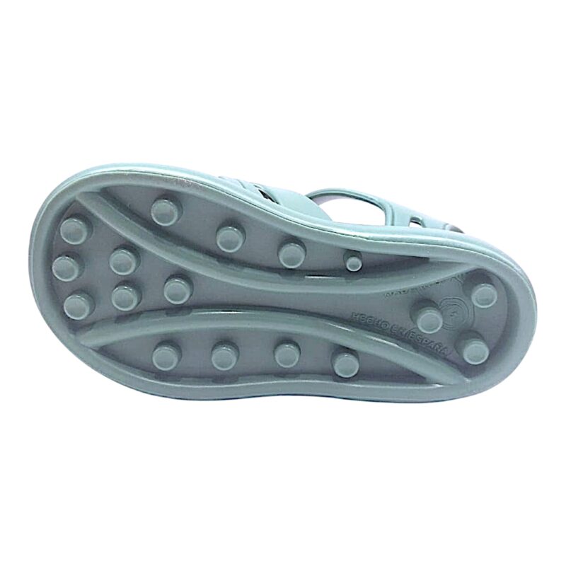 Sandalo tipo “ragnetto” realizzato in gomma di colore verde, pensato per resistere all’acqua e per offrire protezione nella parte frontale senza rinunciare a uno stile fresco.