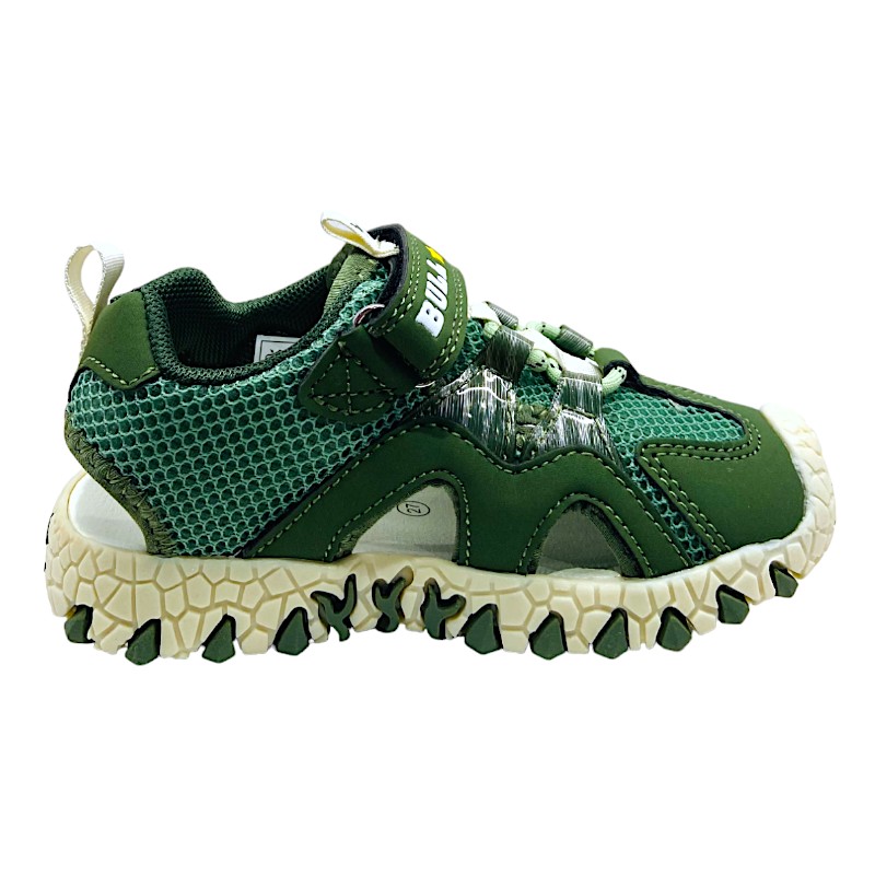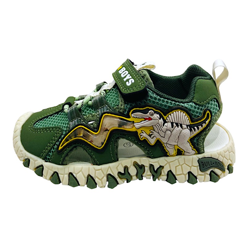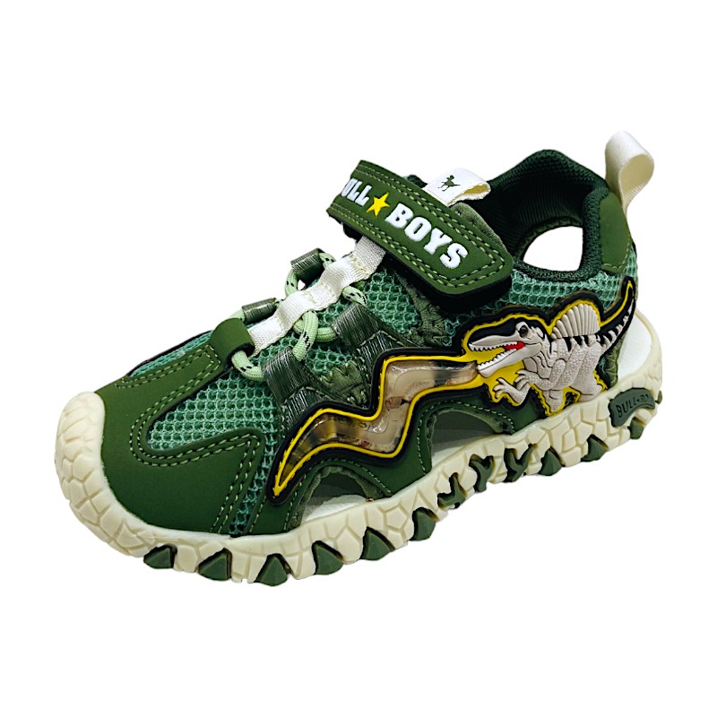 Perfetto per accompagnare ogni avventura estiva, questo sandalo BULL BOYS unisce comfort, resistenza e divertimento in un modello pensato per i piccoli esploratori. Il colore verde giungla, dinamico e grintoso, richiama il mondo dei dinosauri e rende la scarpa ideale per il tempo libero, le passeggiate e i giochi all’aria aperta. 🦖