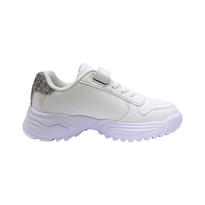 Design contemporaneo che si arricchisce di applicazioni luminose e tallone glitterato per dare più luminosità alla scarpa.
