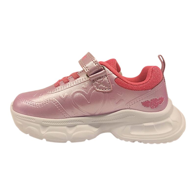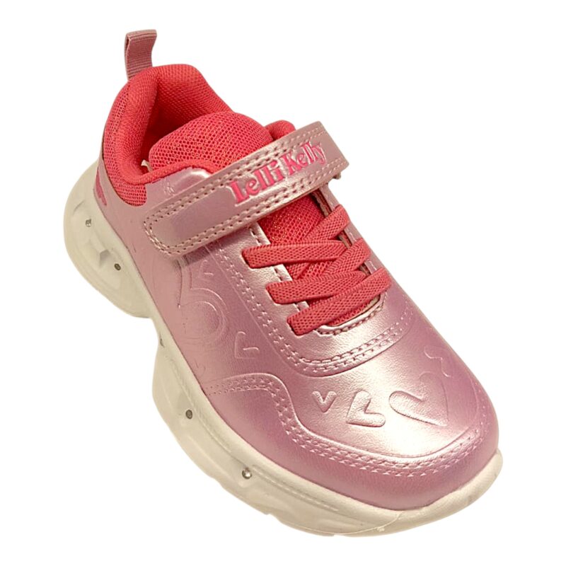 La tomaia nei toni del rosa, arricchita da delicati cuori in rilievo, crea un look dolce e moderno. Le luci integrate nella suola aggiungono un effetto sorprendente, perfetto per illuminare ogni movimento.