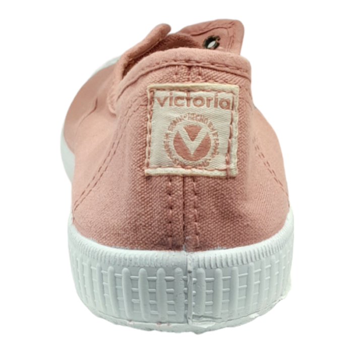 Classica scarpa sneakers inglesina rosa nude per bambina di Victoria Shoes con tela di cotone riciclato DREC® (Dyeable Recycled Eco Cotton) e suola slip-on in gomma naturale vulcanizzata.