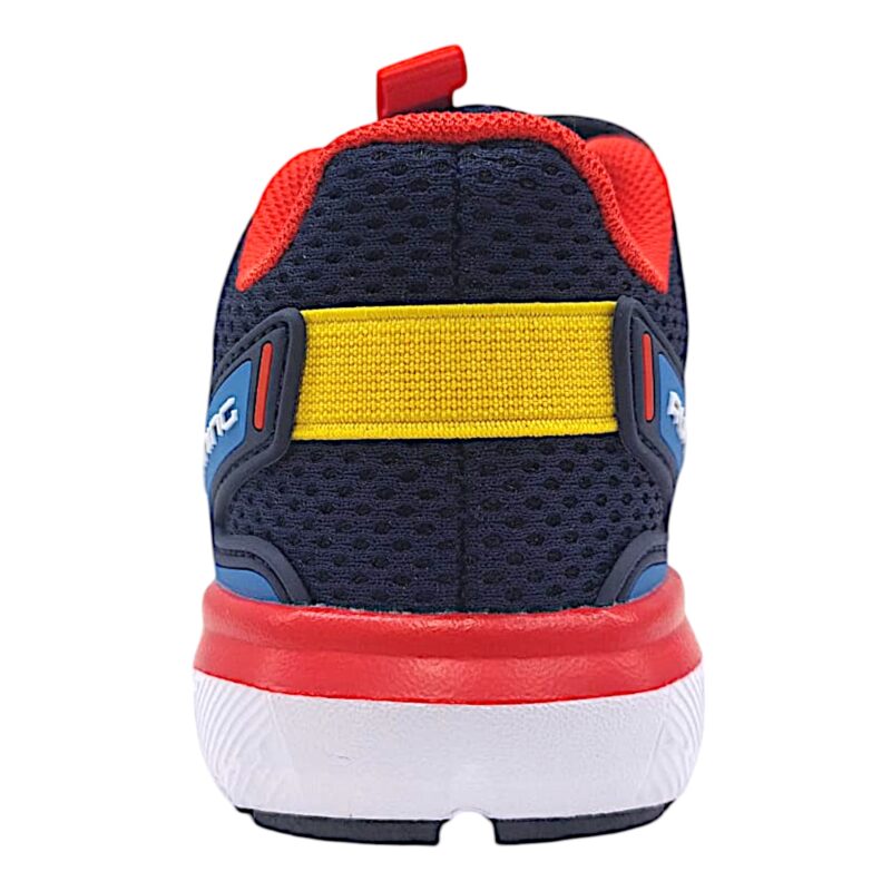 Scarpa sportiva Primigi per bambino in maglia traspirante blu navy, con dettagli celesti e rossi, pensata per accompagnare i bambini nelle attività quotidiane, a scuola e nel tempo libero.