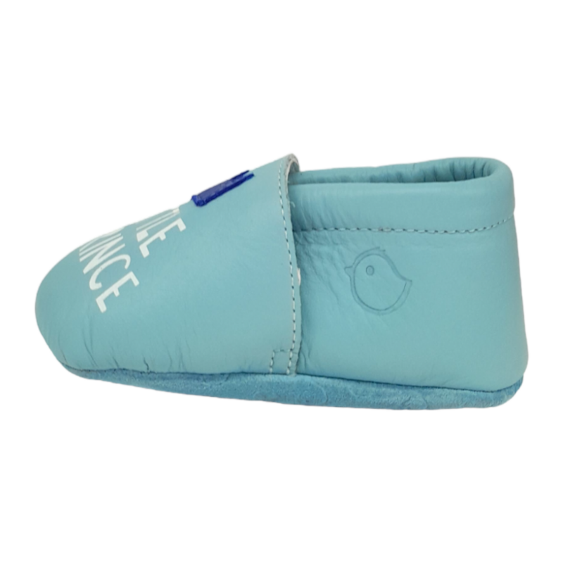 Scarpette neonato soft light blue in pelle con scritta Little Prince – Falcotto