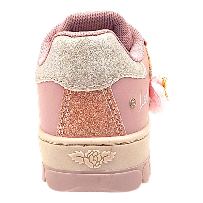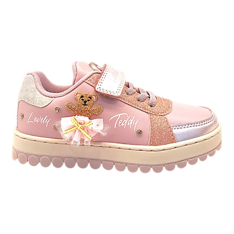 Sneaker bambina rosa cipria con glitter, orsetto ballerina, lacci elastici e strappo – Lelli Kelly