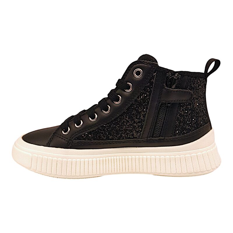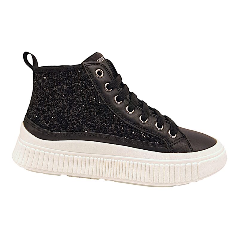 Sneaker ginnica alta per ragazza retata total black glitter con strappo e lacci elastici – Geox