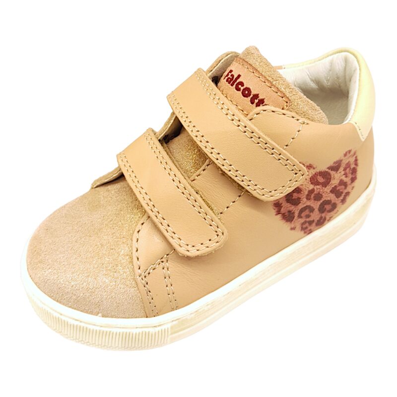 Brillante, tenera e piena di stile, questa sneaker Falcotto accompagna i primi passi con comfort e personalità. Il delicato colore rose-cipria con effetto glitter dona luminosità alla scarpa, mentre il cuore maculato applicato lateralmente aggiunge un dettaglio originale e giocoso. Una sneaker perfetta per le piccole che amano muoversi con dolcezza e carattere. 👟✨