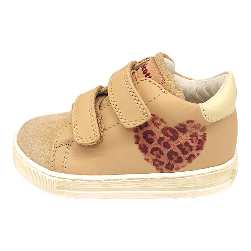 Sneaker primi passi bambina glitter rose-cipria con cuore maculato e doppio strappo – Falcotto
