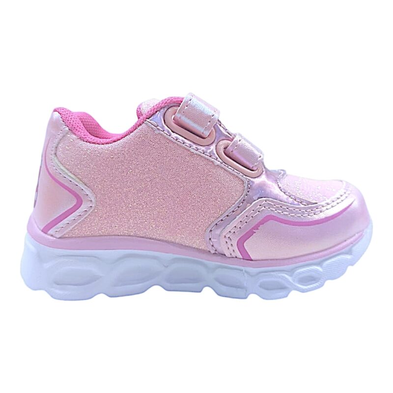 Sneaker sportiva primi passi pink glitter con minnie Disney, doppio strappo e luci – Silver