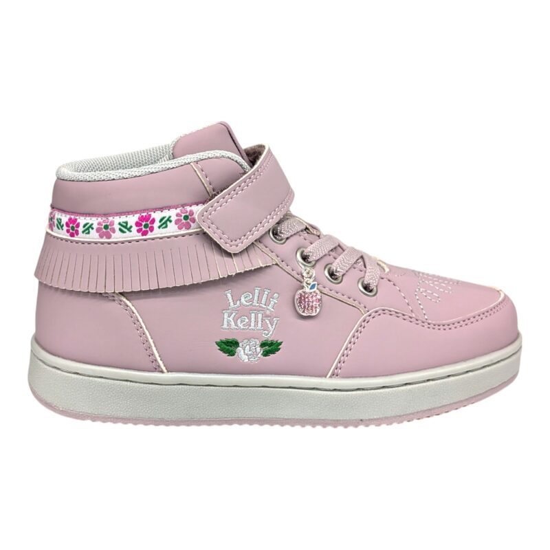 Sneakers alta bambina rosa-cipria con frangetta e charm a forma di mela – Lelli Kelly