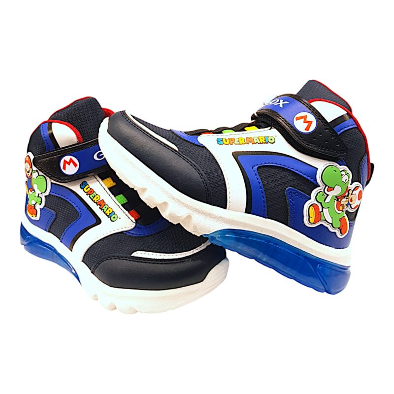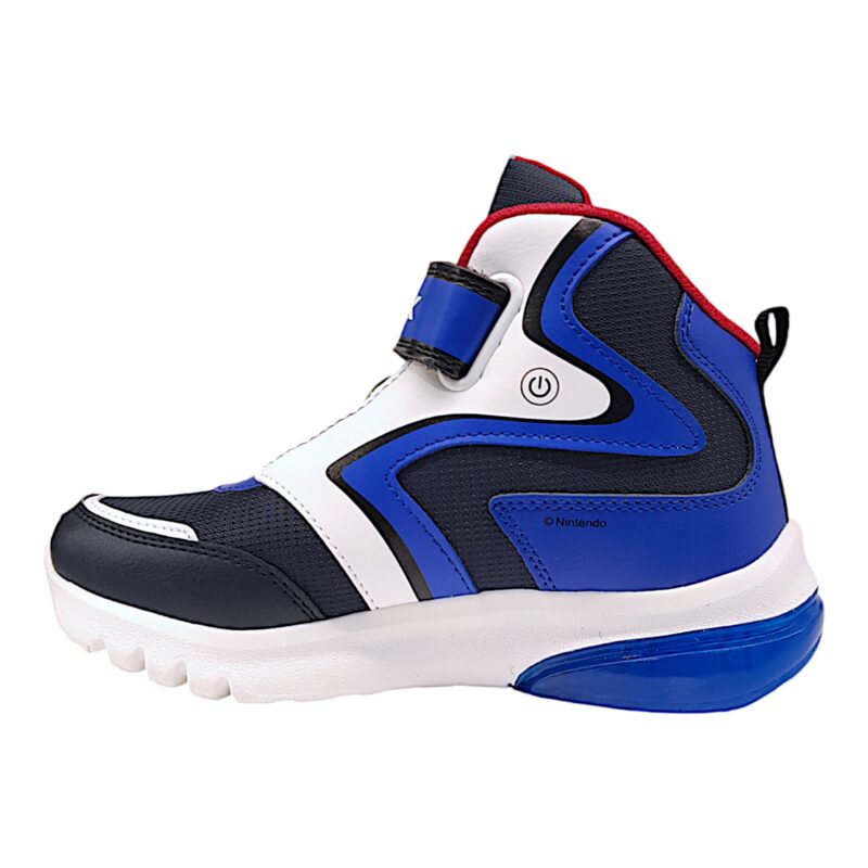 Sneakers alta super mario e yoshi navy-royal-red con strappo, lacci elastici e luci – Geox