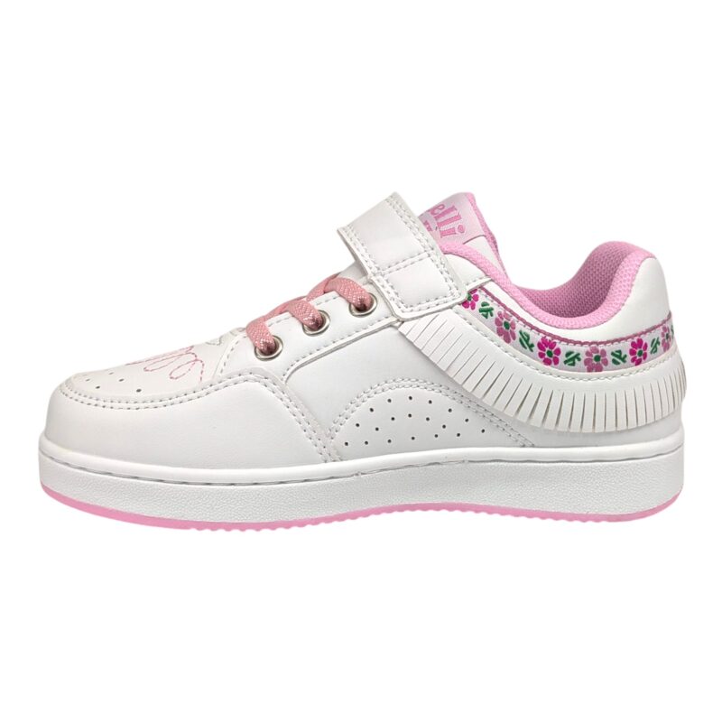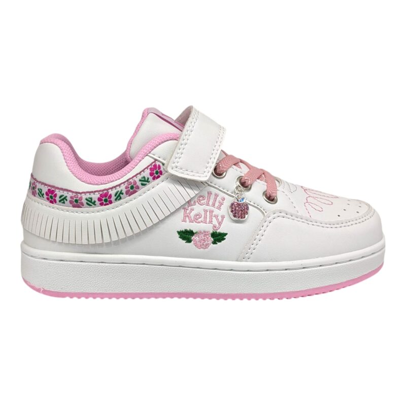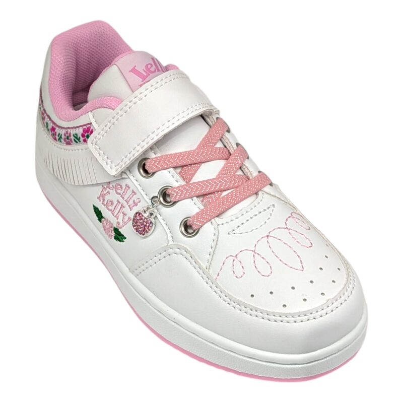 Sneakers bambina bianco-rosa con frangetta e charm a forma di mela – Lelli Kelly