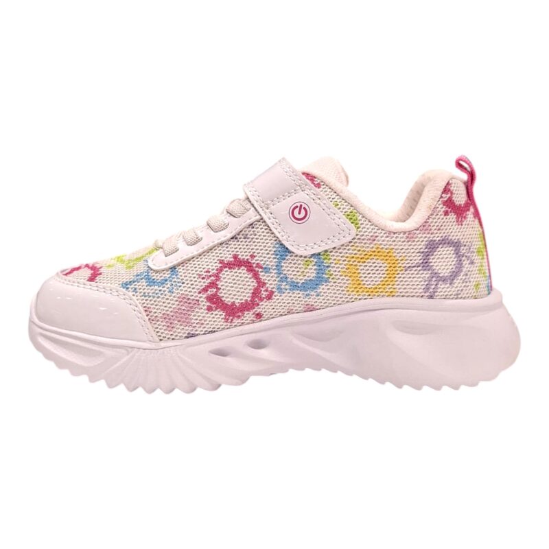 Le luci nella suola rendono ogni passo ancora più divertente, aggiungendo un dettaglio luminoso che piace tantissimo alle più piccole. Oltre allo stile, la scarpa mantiene una struttura sportiva pensata per il massimo comfort.