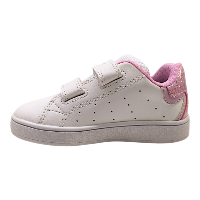 Il mix bianco-rosa glitter regala a queste sneakers un look dolce e vivace, perfetto per bambine che amano scarpe pratiche ma curate nei dettagli. Un modello versatile, facile da abbinare e adatto sia al tempo libero sia alle uscite di ogni giorno.