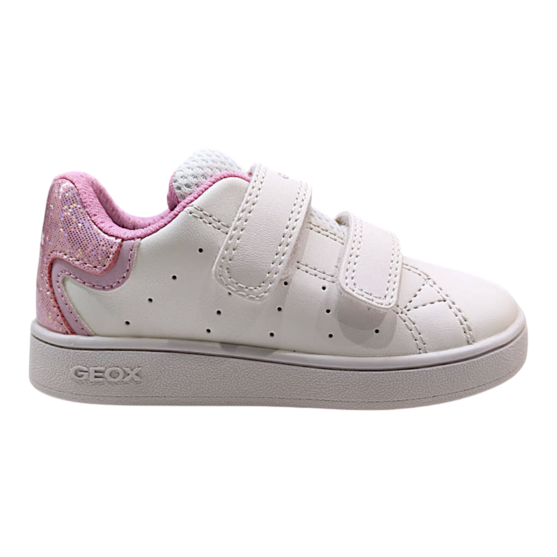 Sneakers bambina white-pink glitter con doppio strappo – Geox