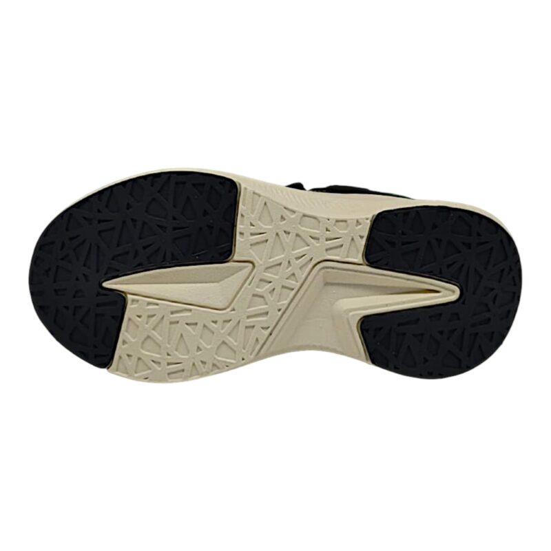 Il velcro abbinato ai lacci elastici facilita la calzata autonoma, permettendo al bambino di indossare e togliere le scarpe facilmente, mantenendo al tempo stesso stabilità e buona aderenza al piede.