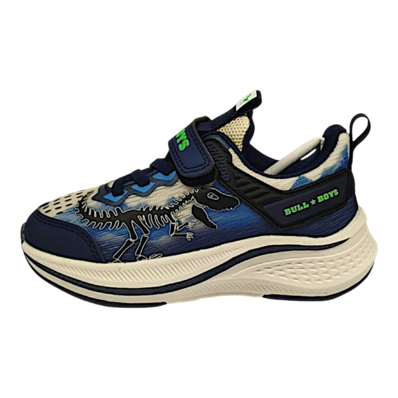 Grintose, divertenti e pensate per accompagnare ogni avventura quotidiana, queste sneakers BULL BOYS conquistano subito grazie al design dinamico con scheletro T-Rex e agli effetti sonori integrati. Perfette per i bambini che amano dinosauri e movimento, uniscono stile sportivo, comfort e tanto divertimento ad ogni passo. 🦖