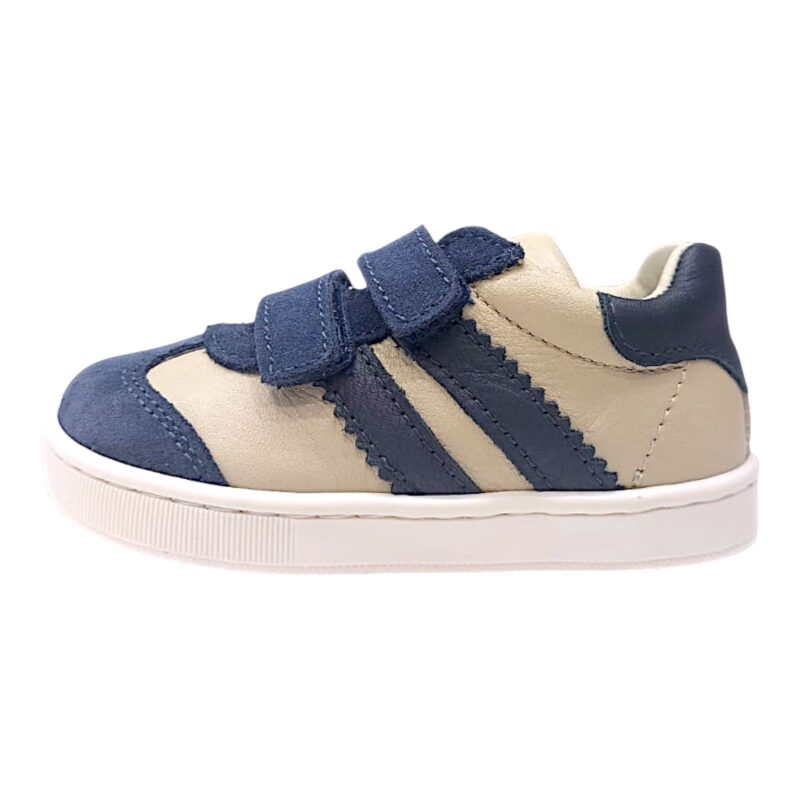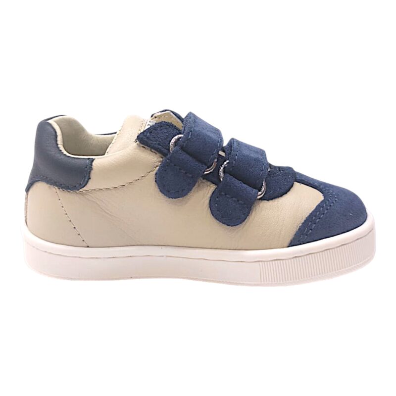 Sneakers bambino primi passi beige e blu con due strappi e punta in camoscio – Balducci