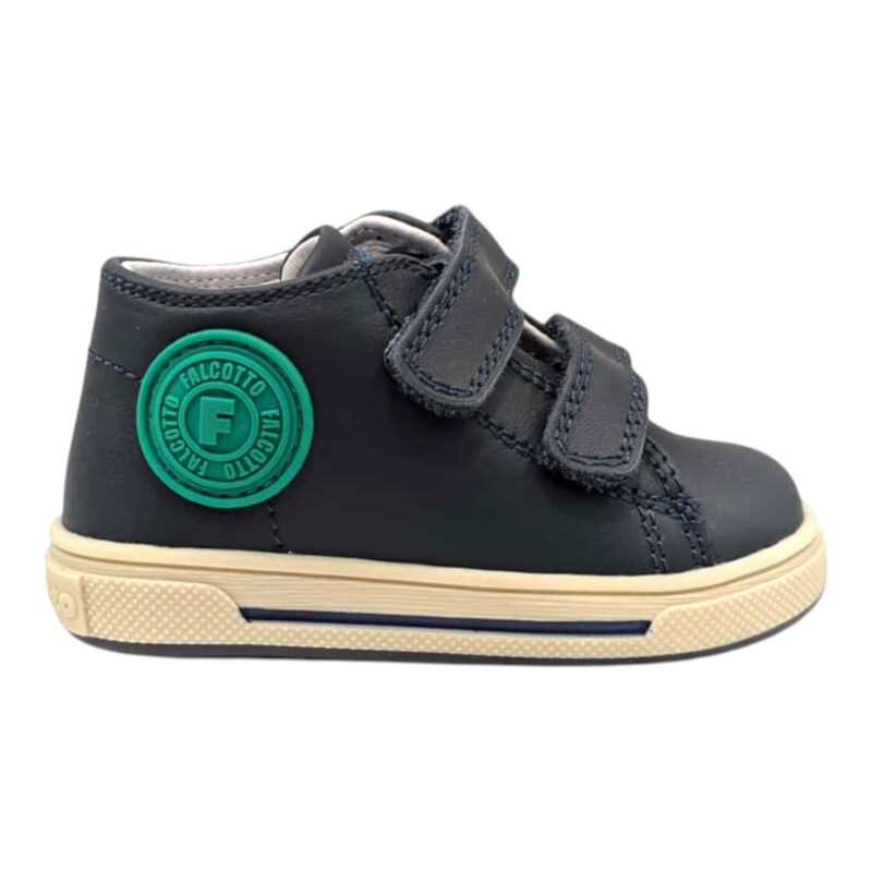 Sneakers bambino primi passi blu con cerchio verde e doppio strappo – Falcotto