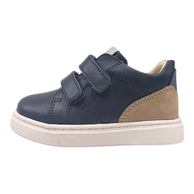 Sneakers bambino primi passi blu e beige con ricamo stella e due strappi – Balducci