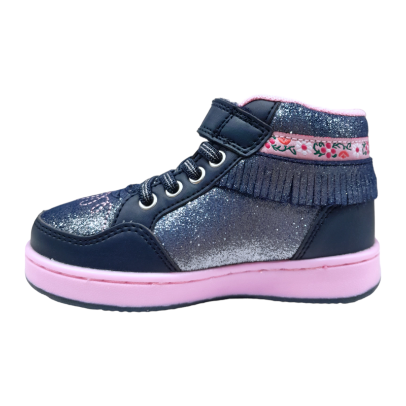 Sneakers blu bambina modello Frangetta Mix con strappo e lacci elastici – Lelli Kelly
