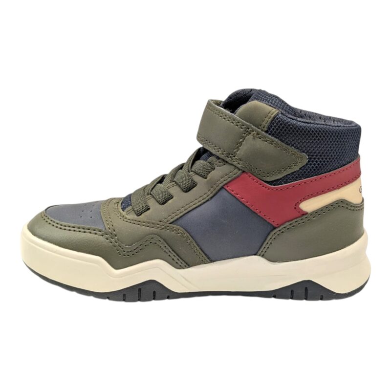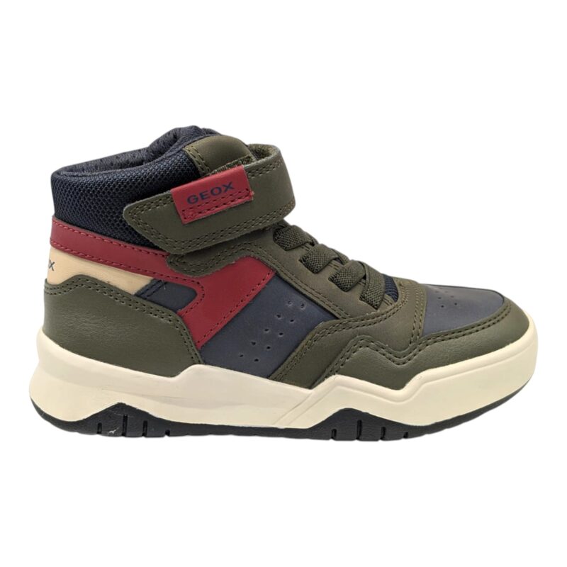 Sportiva, moderna e pensata per accompagnare i ragazzi nelle attività di ogni giorno, questa sneakers alta Geox unisce comfort, stabilità e uno stile grintoso. La combinazione tra verde militare e blu navy, arricchita da dettagli a contrasto, crea un look dinamico e contemporaneo perfetto per outfit casual e sportivi. Ideale per scuola, tempo libero e giornate attive. 👦👟