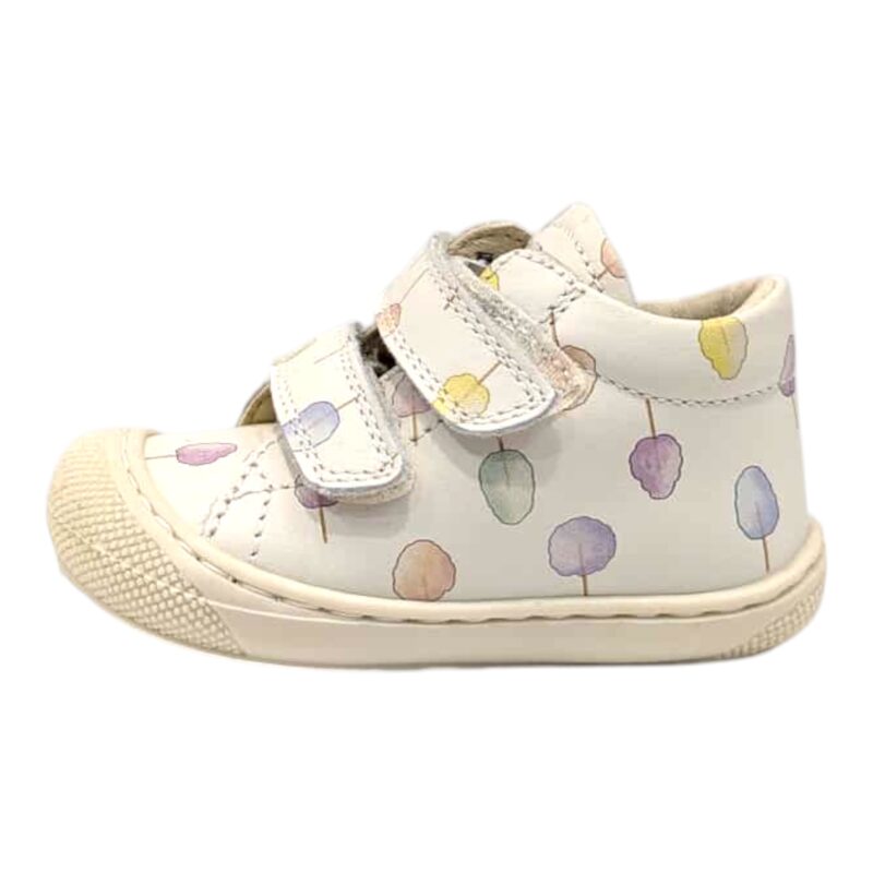 Dolce, originale e perfetta per accompagnare le prime avventure, questa sneakers della linea Cocoon di Naturino è pensata per sostenere i primi passi con comfort e stabilità. Il delicato fondo bianco è arricchito da una simpatica fantasia di zuccheri filati colorati che rende la scarpa tenera e giocosa, ideale per le bambine. 🍭👧👟