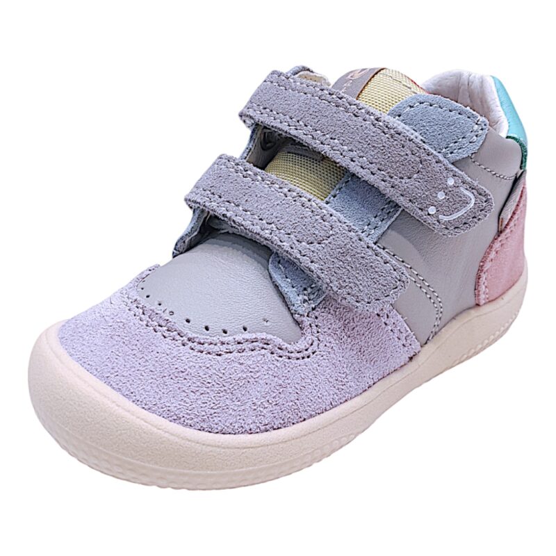 La tomaia combina pelle scamosciata e inserti in tessuto, offrendo resistenza, comfort e una buona traspirabilità. I materiali si adattano al piede garantendo libertà di movimento durante le prime fasi della crescita. 🧸