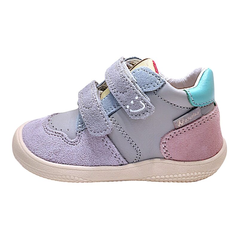 Questa sneakers primi passi Naturino Cocoon è pensata per accompagnare le bambine nelle prime esplorazioni con comfort e stabilità. Il mix di colori delicati lilla, grigio e rosa crea un look dolce e moderno, perfetto per completare gli outfit quotidiani con un tocco di stile. 👟✨