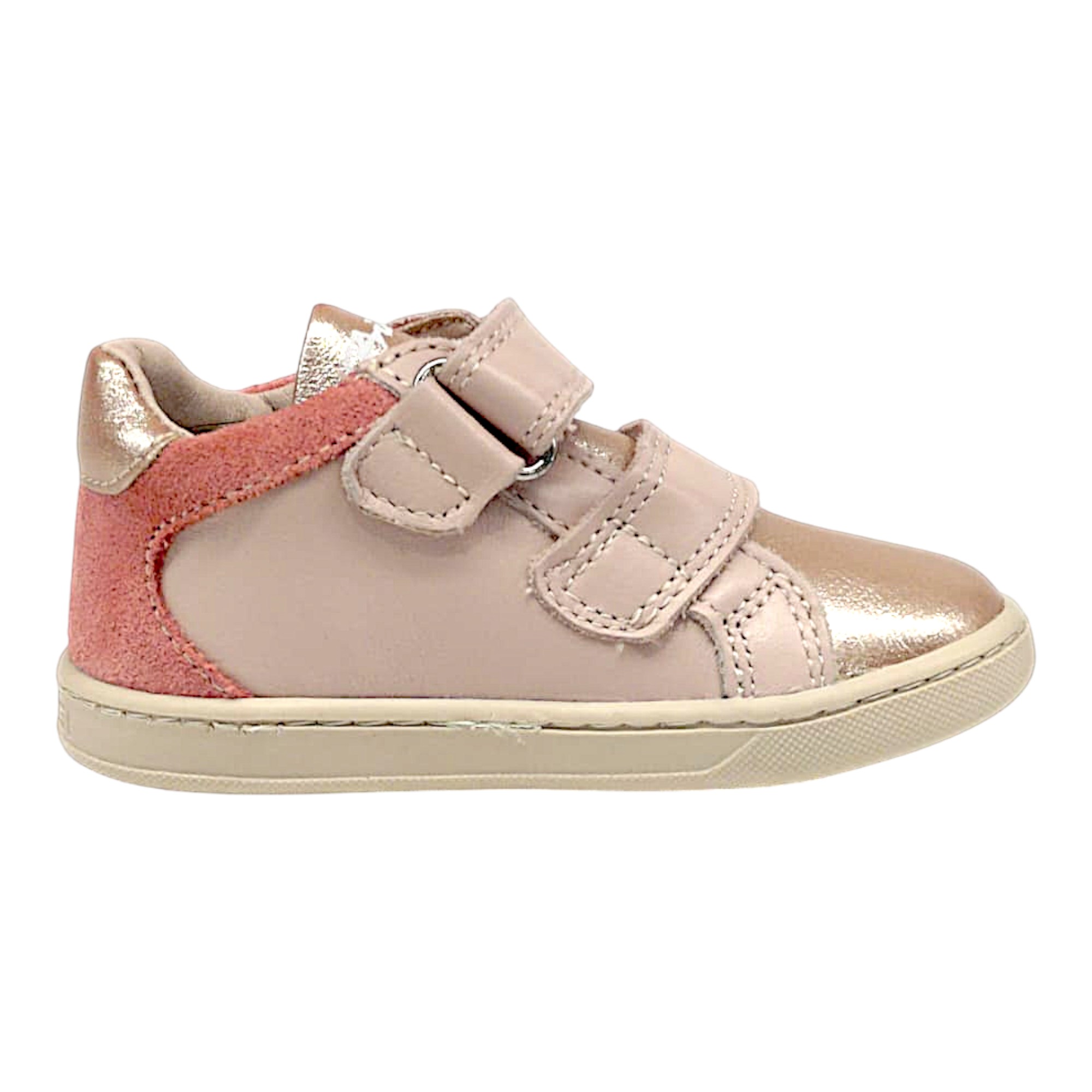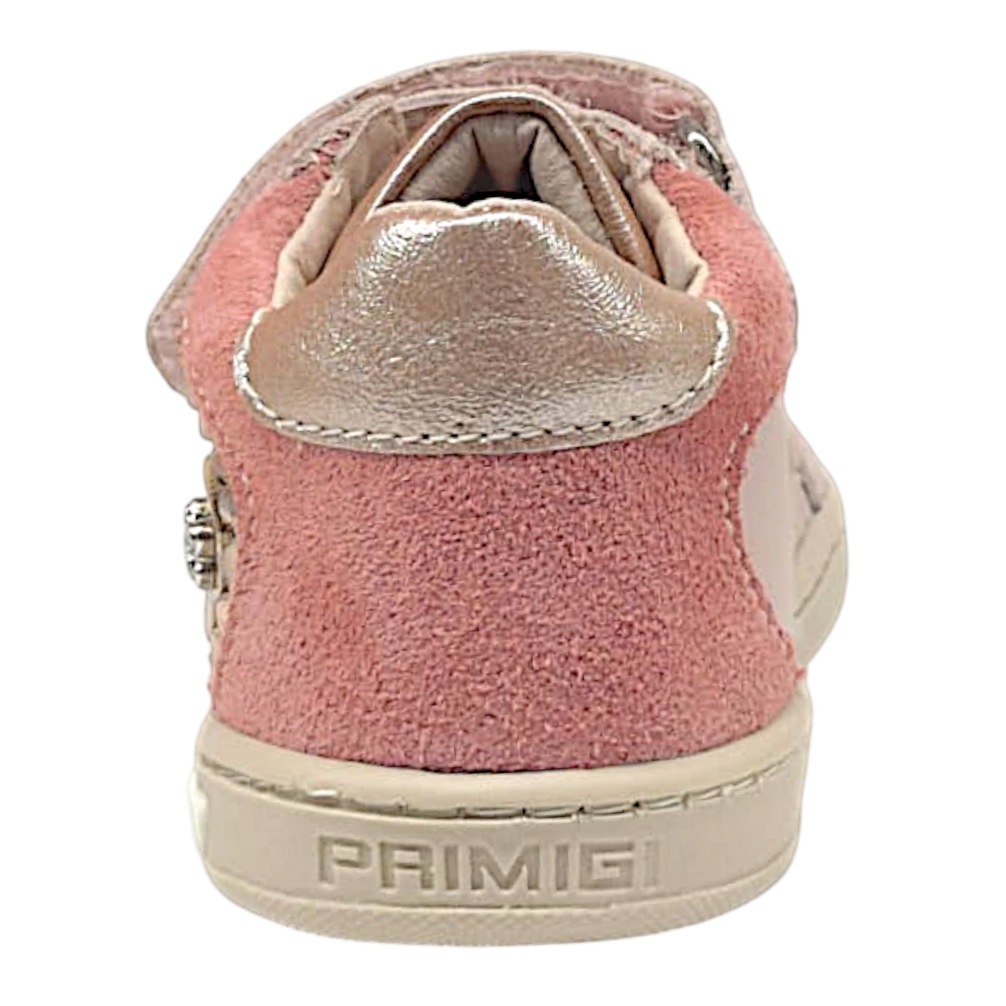 Sneakers Primigi primi passi pensata per accompagnare la bambina nelle prime camminate con comfort, stabilità e uno stile delicato. Il modello è realizzato in pelle nelle tonalità Rosa-Rosa Antico, con una raffinata combinazione di superfici lisce e leggermente metallizzate sulla punta, che donano luminosità senza risultare eccessive.