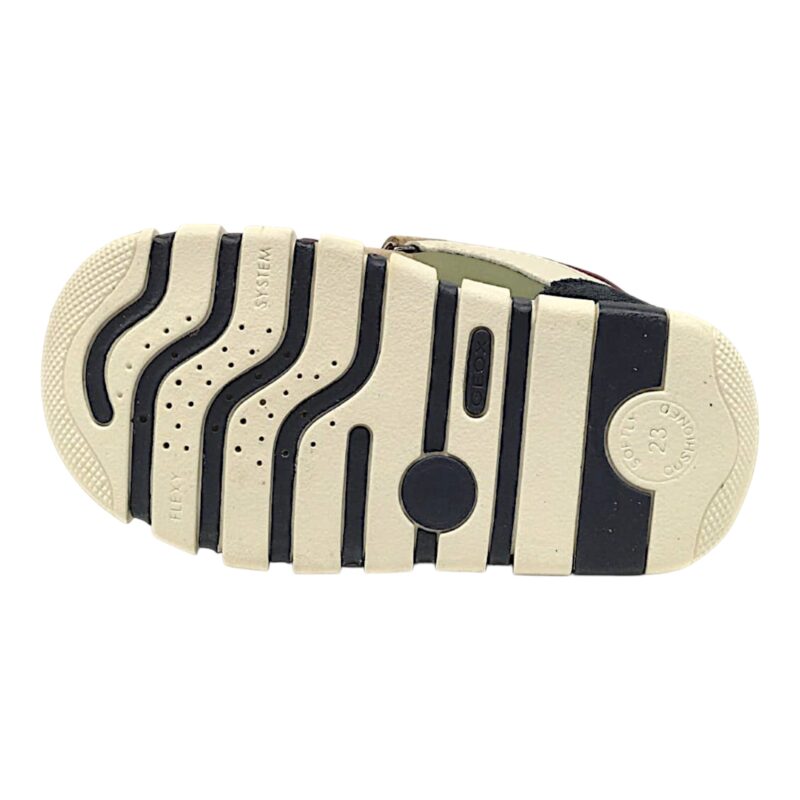 La suola leggera e segmentata favorisce il movimento naturale del piede e assicura una buona aderenza al terreno. Questo supporto aiuta il bambino a muoversi con sicurezza durante le prime camminate e le attività quotidiane.