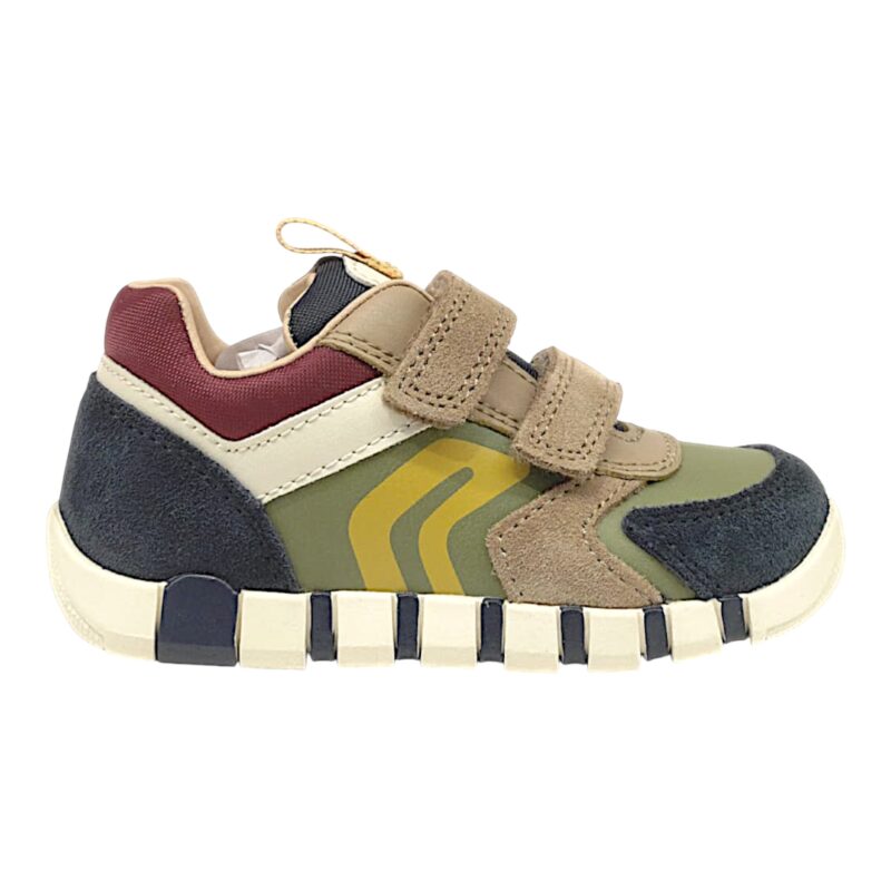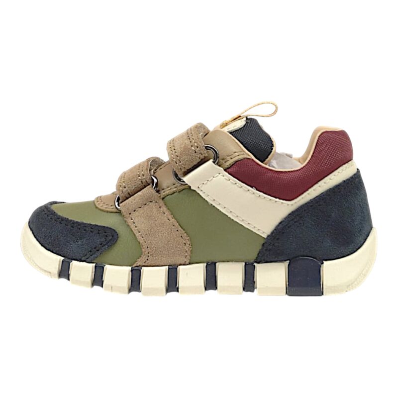 Sportiva, dinamica e progettata per accompagnare i più piccoli nelle loro prime esplorazioni, questa sneakers Geox primi passi unisce comfort, sostegno e uno stile moderno. La combinazione di blu navy e verde pistacchio crea un contrasto originale e vivace, perfetto per completare gli outfit casual dei bambini. 👦👟