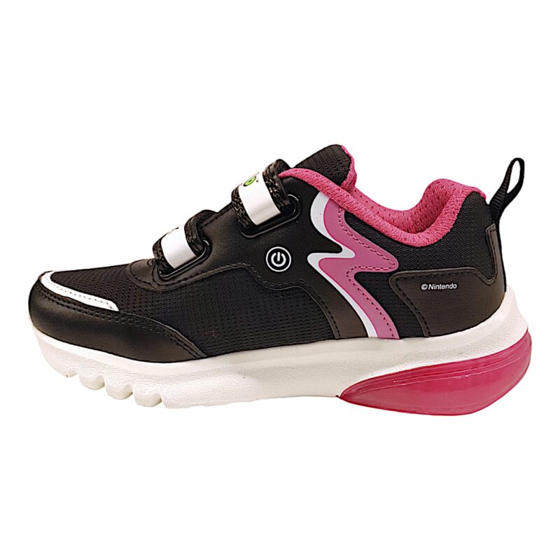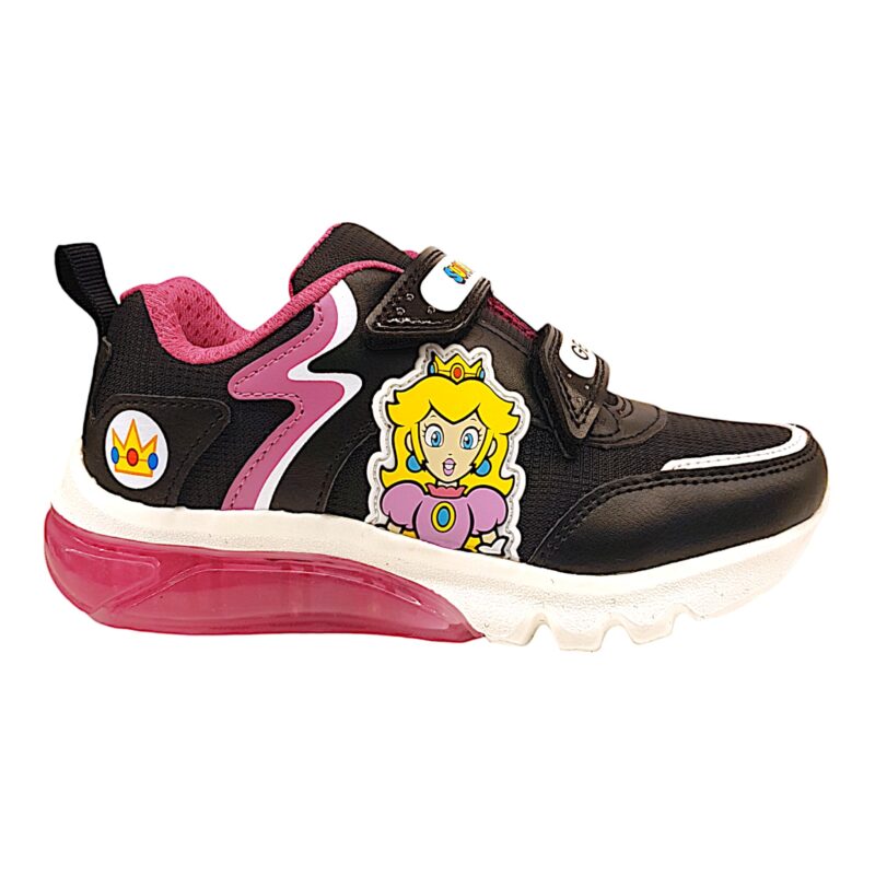 La sneakers presenta un’applicazione laterale con la Principessa Peach e dettagli grafici legati all’universo di Super Mario. I colori nero e fucsia creano un contrasto vivace che rende la scarpa originale e perfetta per le bambine che amano questo iconico personaggio.