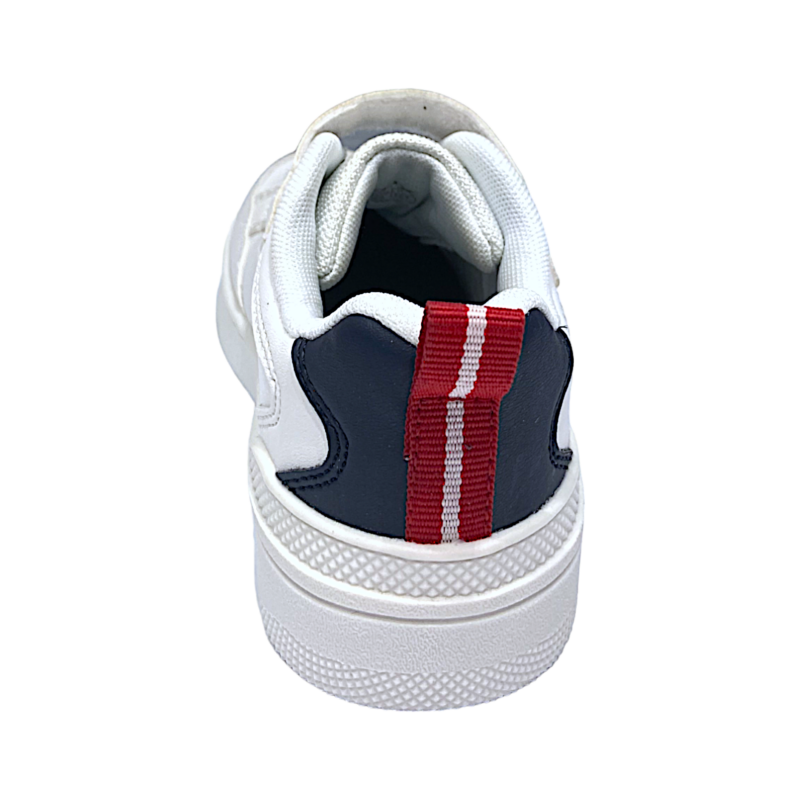 La base bianca dona alla scarpa uno stile semplice e contemporaneo, mentre i lacci blu navy e i piccoli dettagli a contrasto aggiungono carattere al design. Un modello sportivo ma allo stesso tempo elegante, perfetto per l’uso quotidiano.