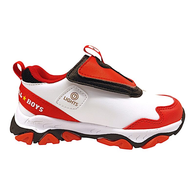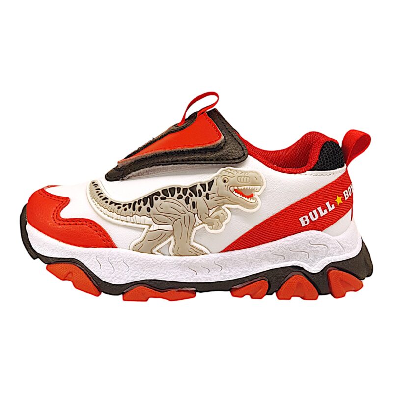 Sneakers T-Rex bianco-rosso con luci per bambino – BULL BOYS