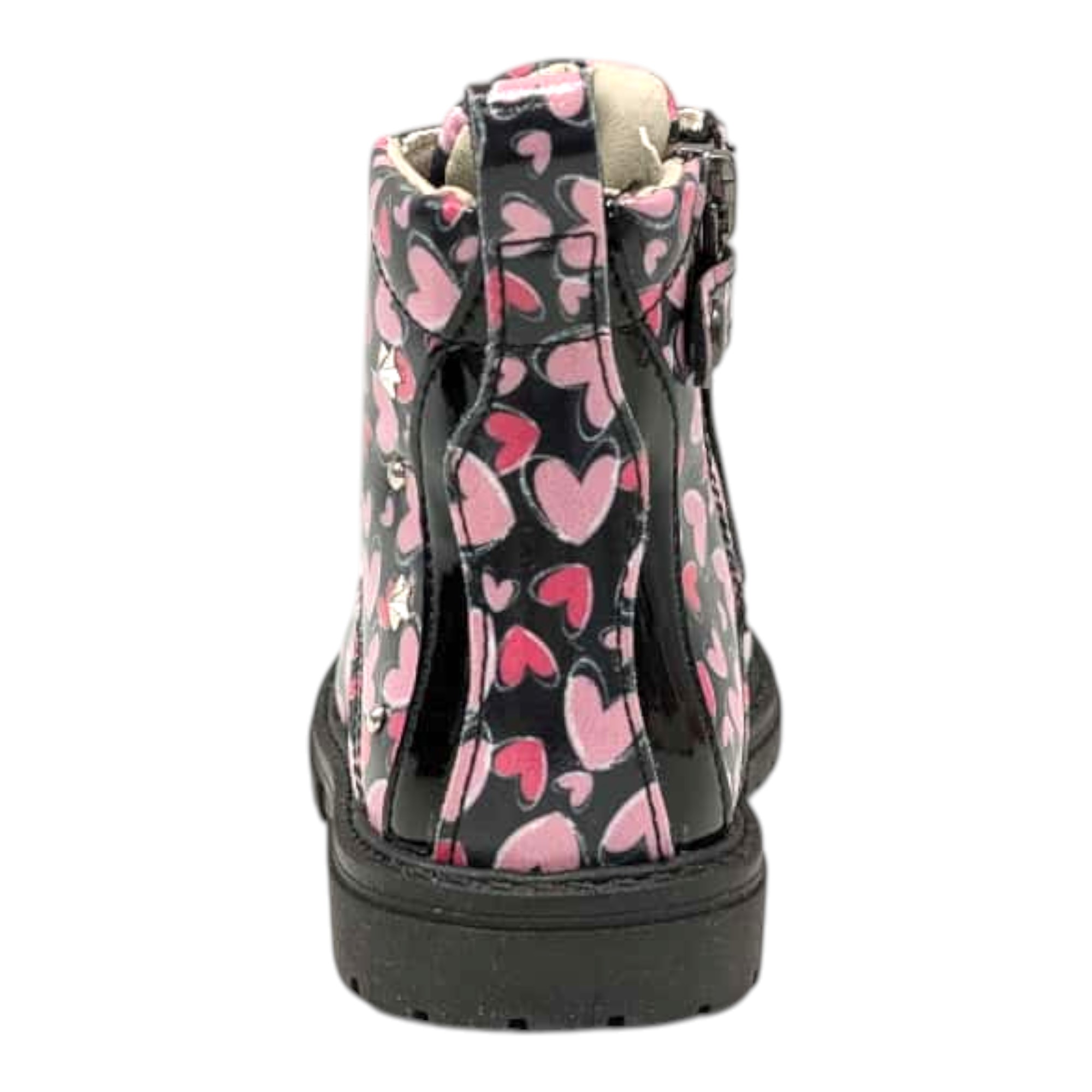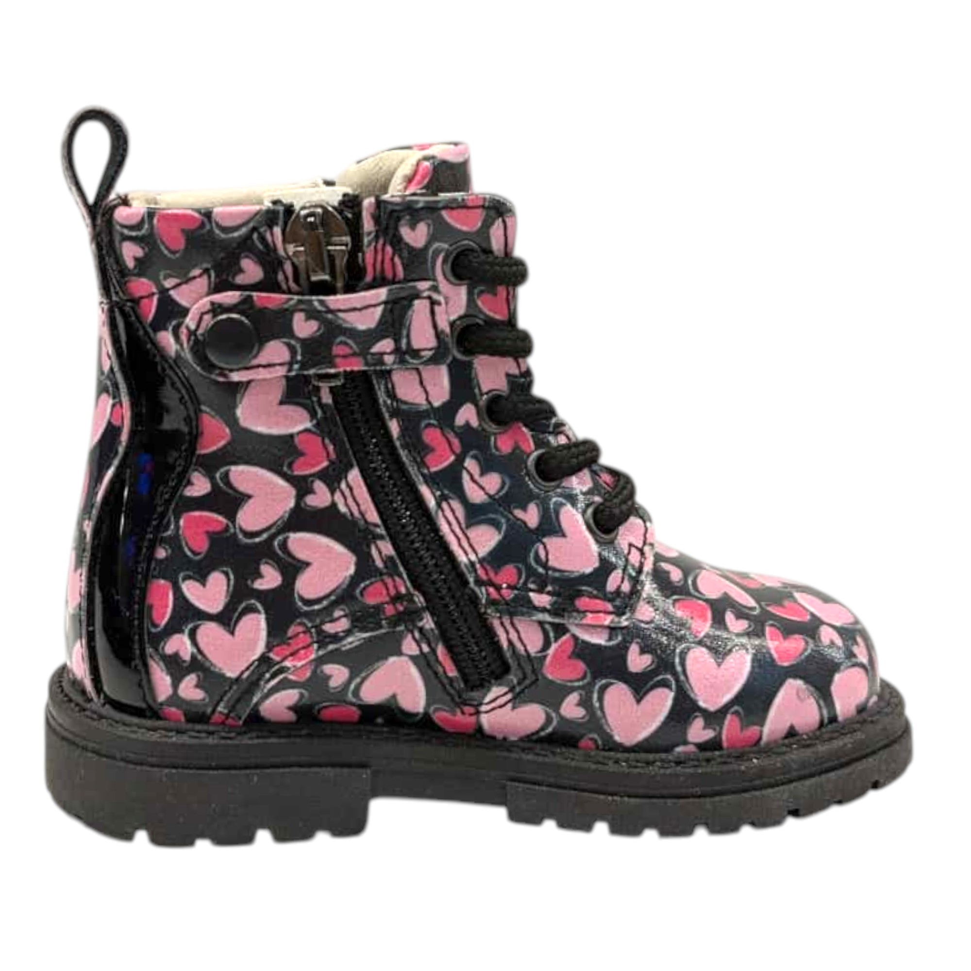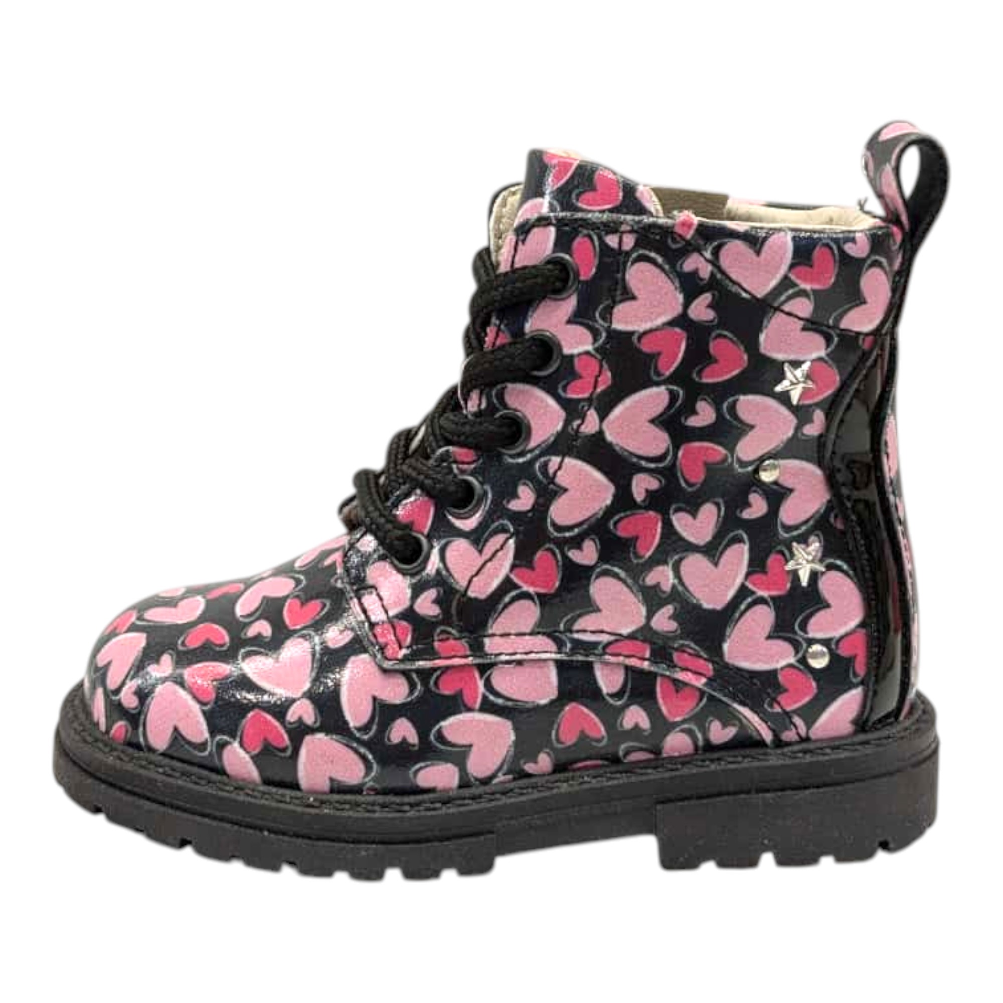 Stivaletto anfibio black per bambina con cuori red-pink e lacci con zip laterale – Primigi