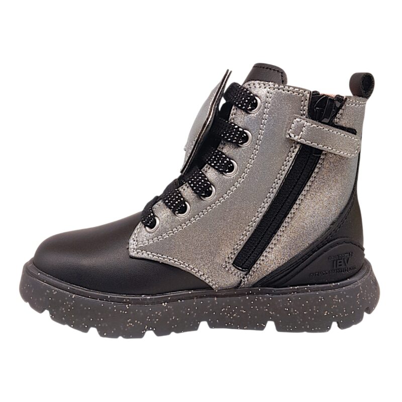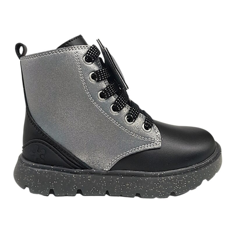Stivaletto anfibio black-silver con lacci e zip laterale – Biomecanics