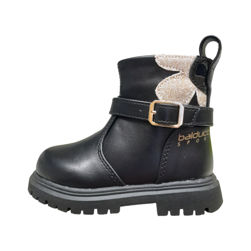 Stivaletto nero con fibbietta e decorazione gold glitter – Balducci sport